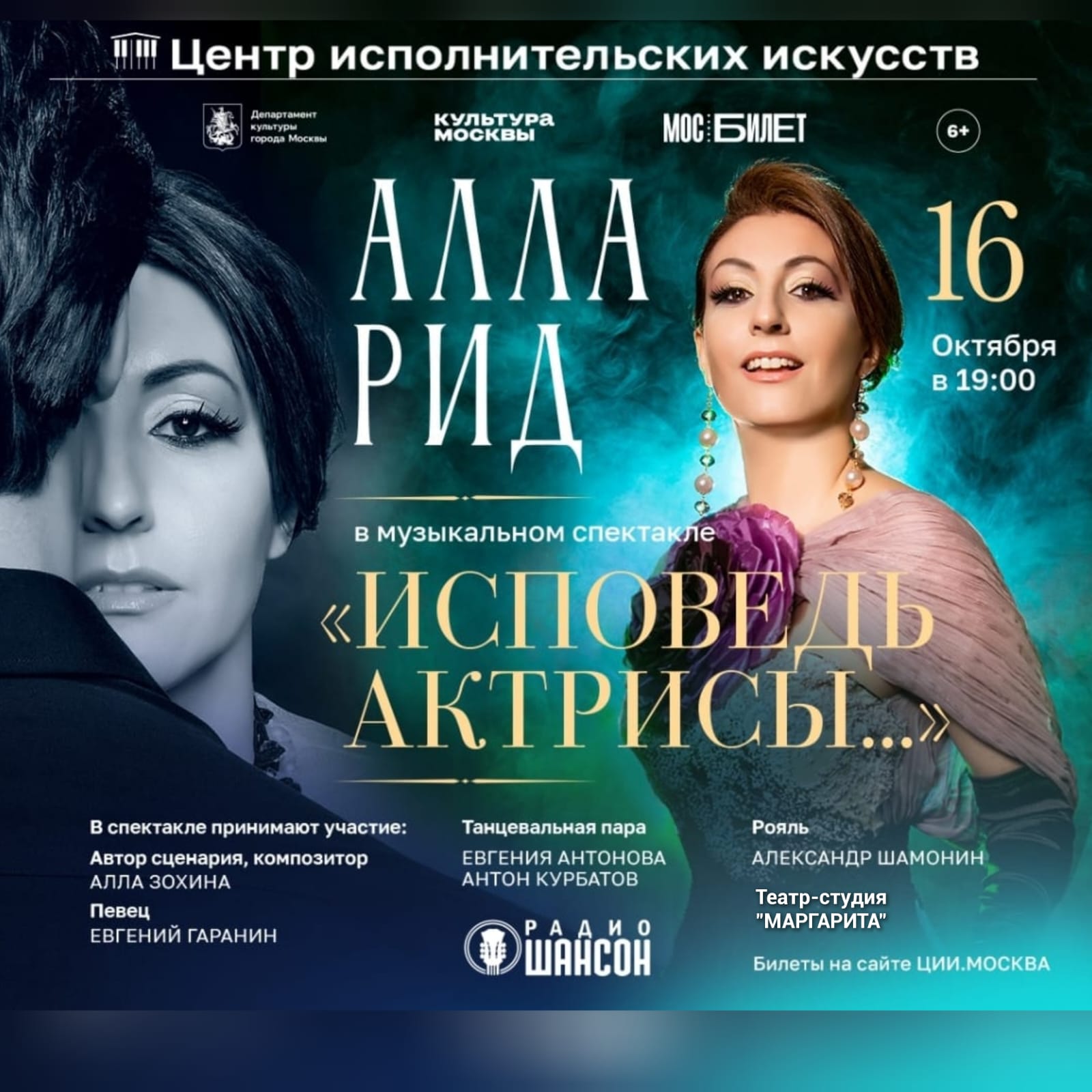 16 октября в 19.00 на сцене Грацкий Холл Театр — студия «Маргарита» в музыкальном спектакле Аллы Рид «Исповедь актрисы»